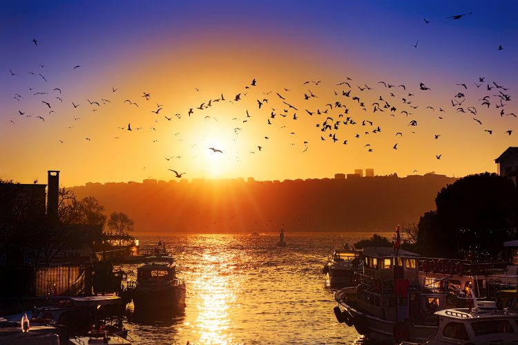 Anadolu Hisarı’nda Göksu Deresinin Boğaziçiyle birleştiği yer. Gün batımı sırasında martıların geçişi.